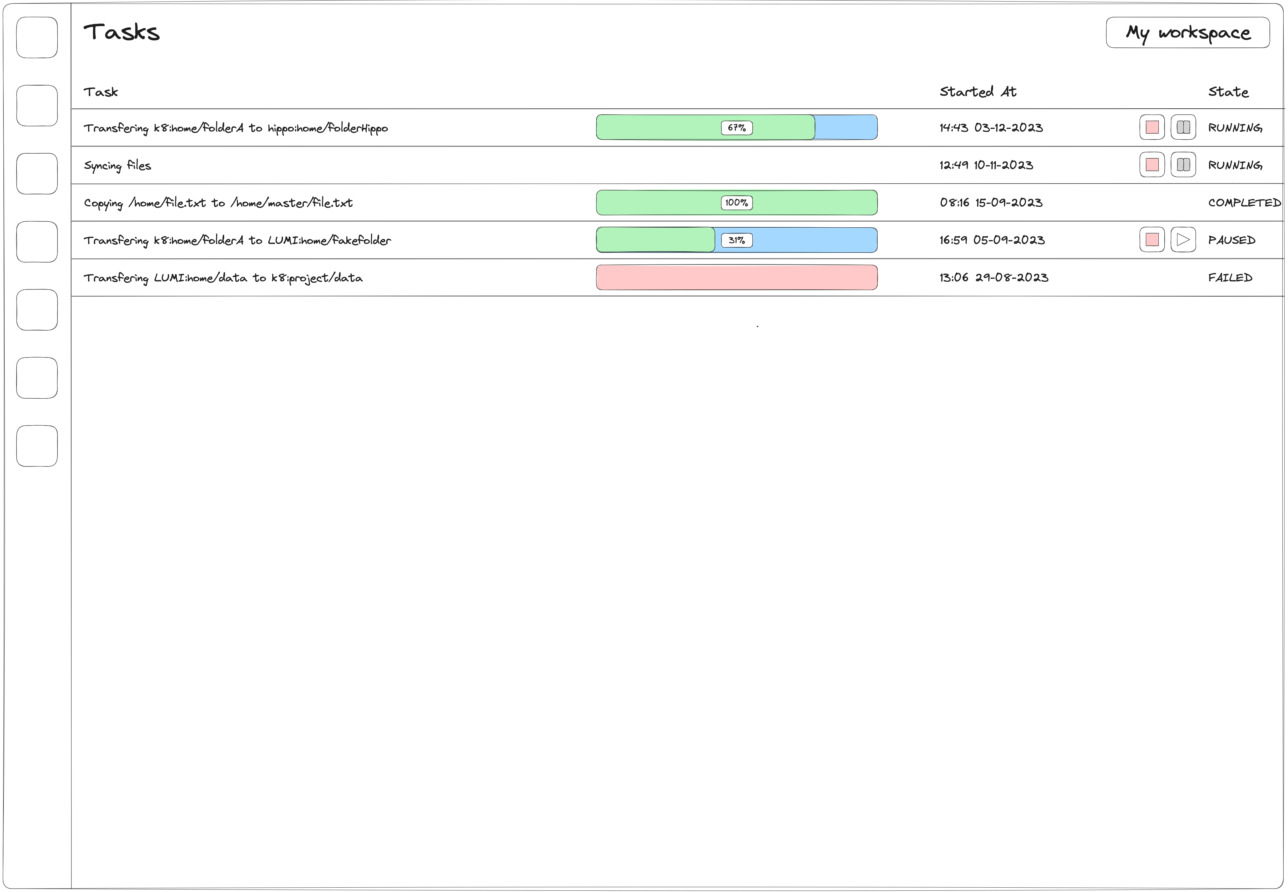 Dedicated page for background tasks. This will allow the researcher to follow the status of ongoing and previously completed file transfers.